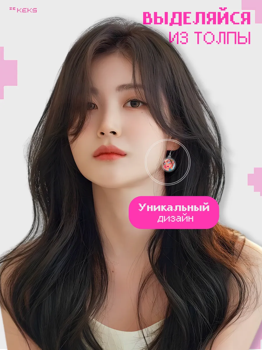 Двусторонний дизайн делает их особенно универсальными — поворачивай настроение в любую сторону! Эти оригинальные, кавайные серьги отлично сочетаются с аниме украшениями, эстетичными луками и яркими акцентами. Они словно сошли со страниц модного журнала или кадра любимого аниме.