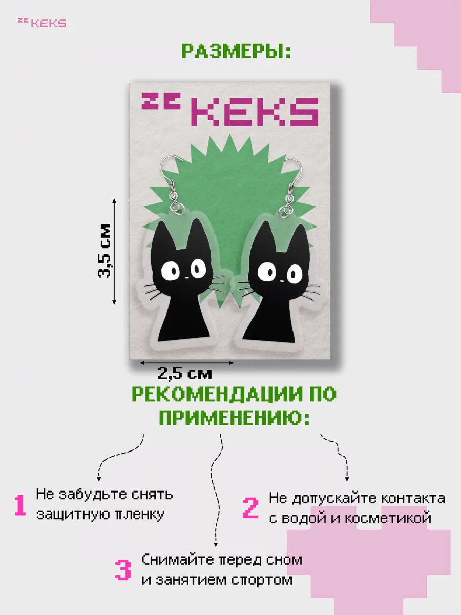 Серьги оригинальные «Ведьмина служба доставки" (аниме, Kiki's Delivery Service, чёрный кот, Дзидзи) в милом стиле от бренда zeKeks — это не просто украшение, а настоящая находка для тех, кто ищет что-то милое, стильное и эстетичное. Эти легкие сережки выполнены в двустороннем дизайне, они станут ярким акцентом в любом образе.