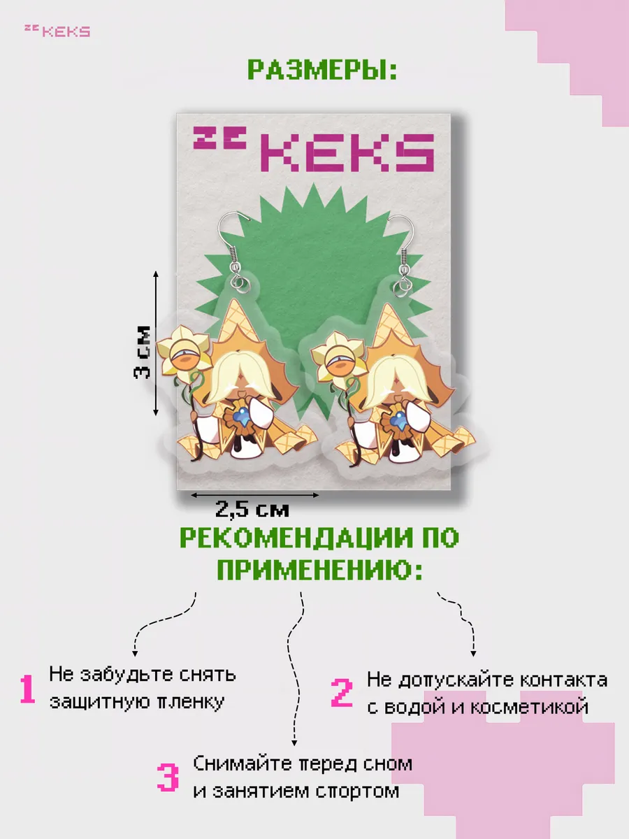 Серьги Cookie Run: Kingdom (Куки ран киндом) Pure Vanilla Cookie (Чистое Ванильное Печенье, пур ванила куки) от бренда zeKeks — это не просто украшение, а настоящая находка для тех, кто ищет что-то милое, стильное и эстетичное. Эти легкие сережки выполнены в двустороннем дизайне, они станут ярким акцентом в любом образе.