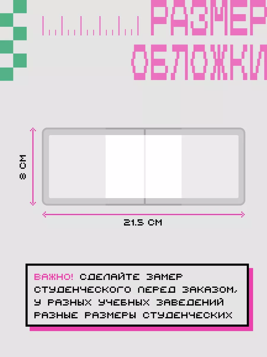 Сохраните ваш студак в идеальном состоянии с нашим прочным чехлом из качественного ПВХ материала. Эта обложка не только защитит ваш студенческий билет от потертостей и влаги, но и придаст ему стильный вид за счет уникальных принтов. Идеально подходит для ежедневного использования, легко чистится и долговечна. Защитите свой главный документ студента – ваш студак – с нашим удобным и надежным чехлом!