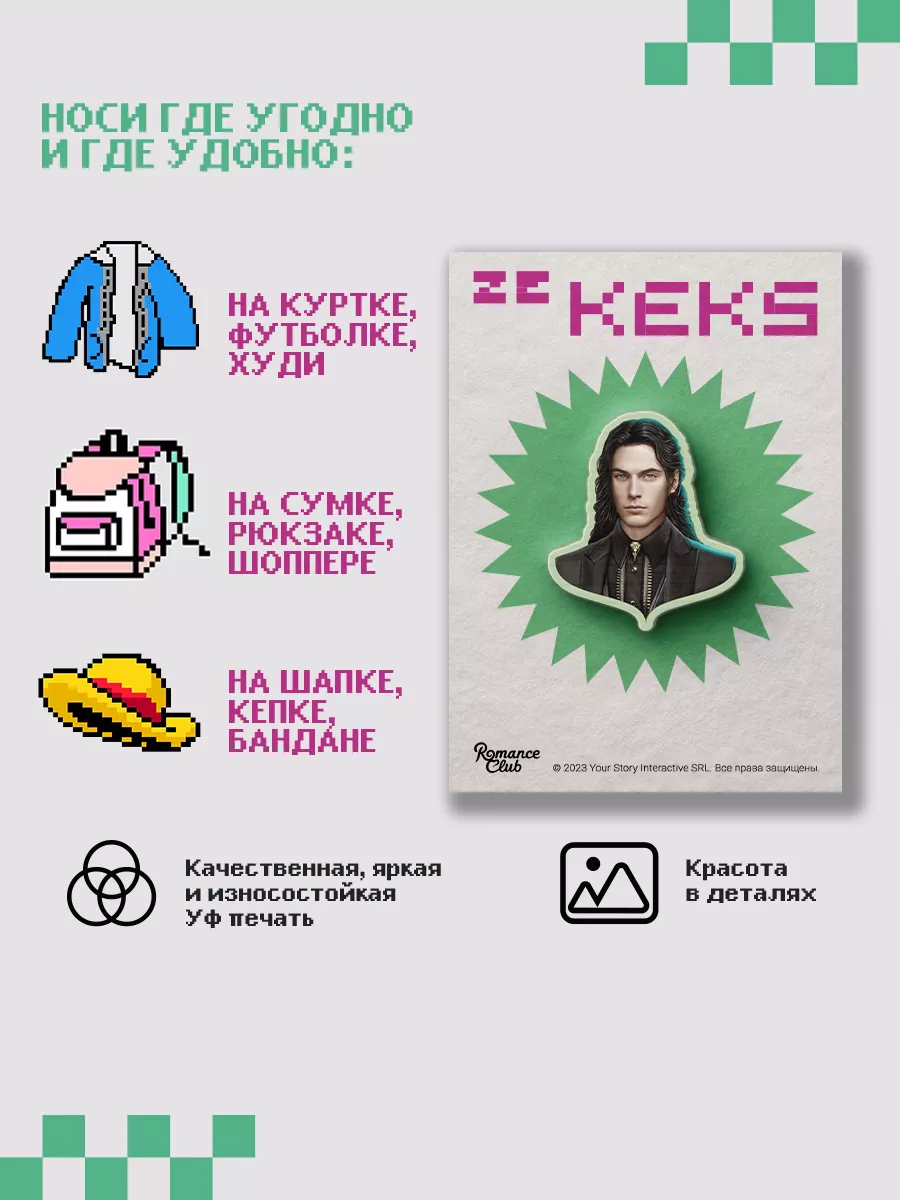 Коллекционируйте значки по "Клубу Романтики"! Эксклюзивные дизайны, посвященные персонажам и моментам игры. Дополните свою коллекцию яркими аксессуарами.