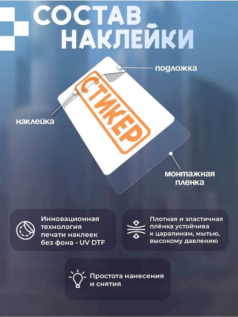 Ваш автомобиль заслуживает быть особенным! Наши УФ ДТФ наклейки – это взрыв цвета и стиля, который продержится годами. Устойчивость к солнцу, дождю и мойкам – забудьте о выцветании! Легко нанести, легко снять. Создайте свой неповторимый дизайн и заявите о себе на дороге. Выбирайте из каталога свою эксклюзивную наклейку прямо сейчас!