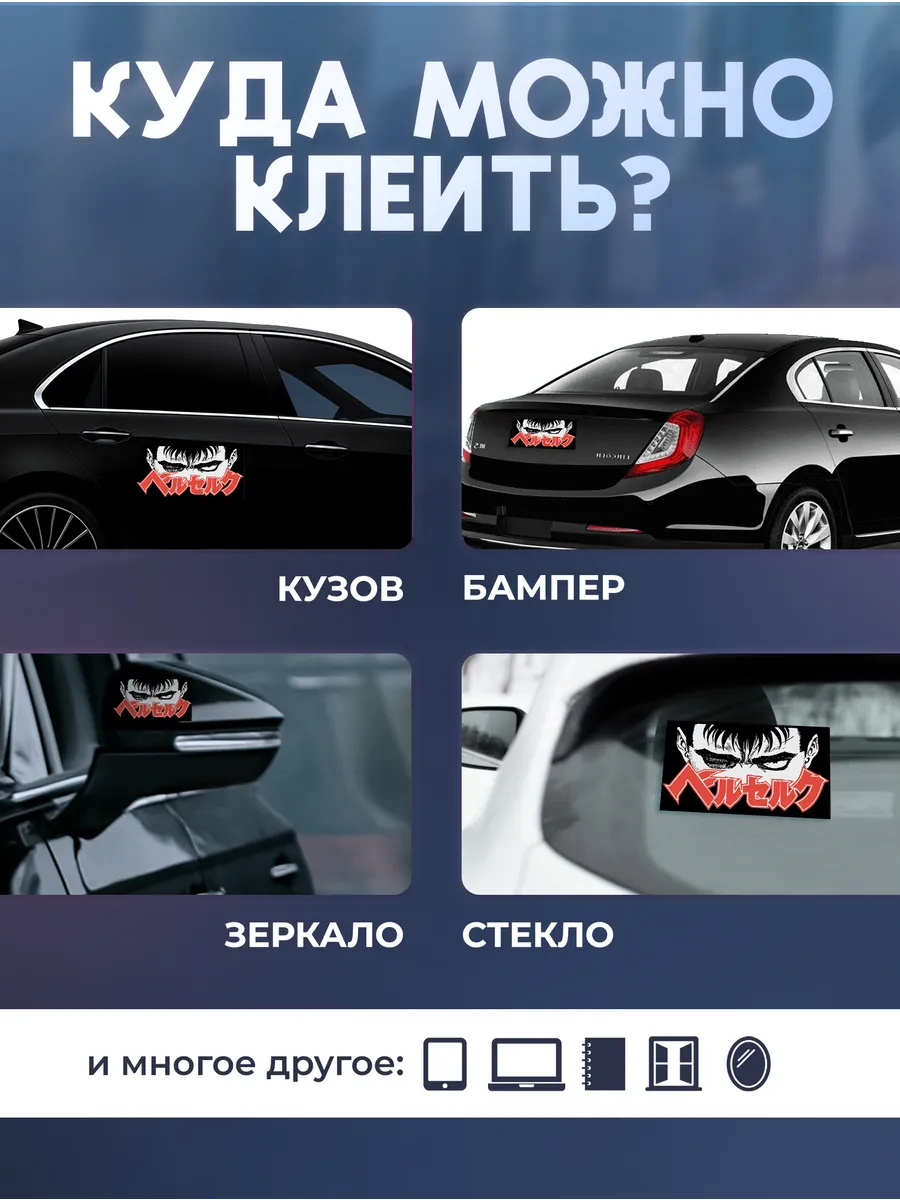 Наклейка на машину тюнинг UV Гатс / Guts из аниме "Берсерк/ Berserk" – стильный акцент на вашем автомобиле.