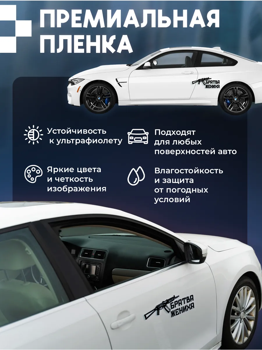 Наклейка на машину тюнинг UV прикольная надпись, мем "Братва жениха" (Свадьба) – стильный акцент на вашем автомобиле.