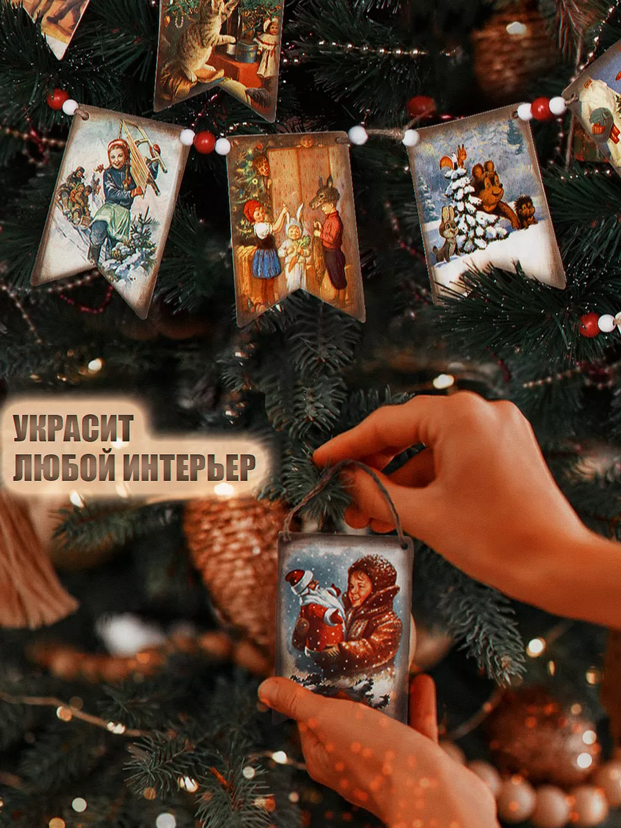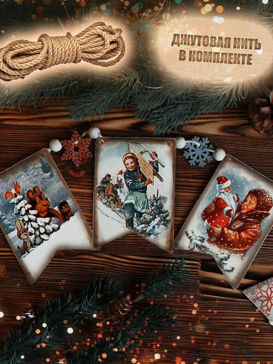 Новогодняя ретро гирлянда-флажки деревянные - идеальное ёлочное украшение для создания атмосферы сказки и праздника. Эта гирлянда из деревянных советских флажков добавит неповторимости вашей елке и станет ярким акцентом в новогоднем декоре.
