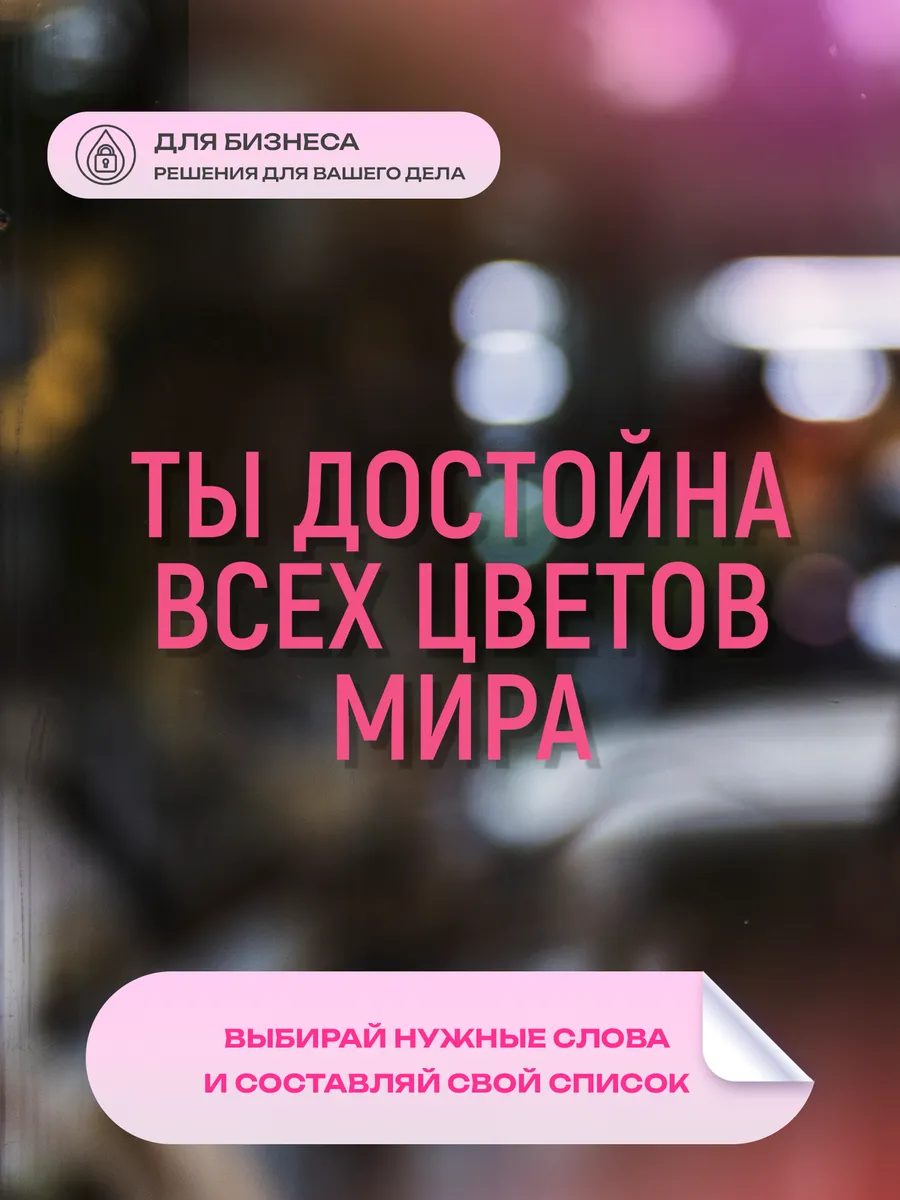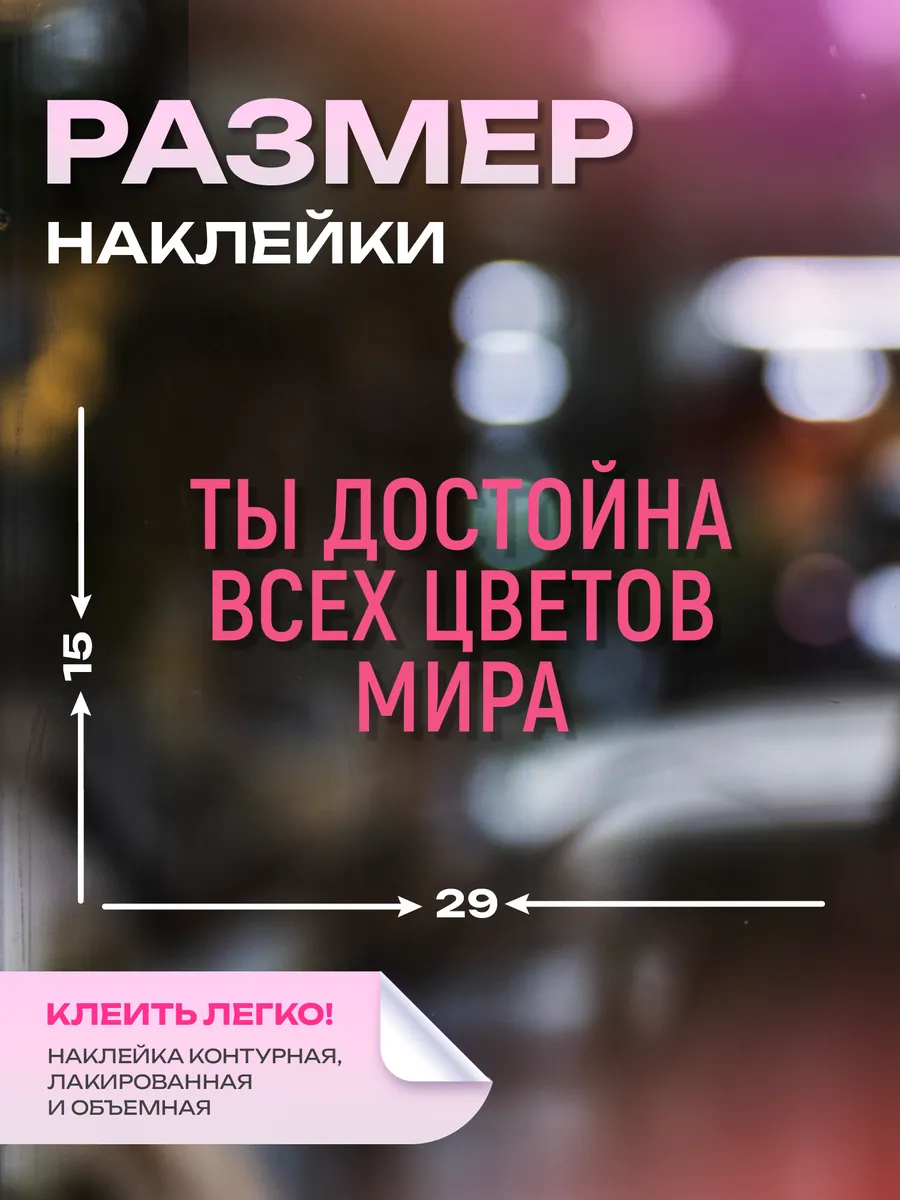 Наклейка на стекло, дверь решение для бизнеса "Ты достойна всех цветов мира" — уникальный стикер УФ ДТФ печати для вашего бизнеса. Ищете эффектный способ привлечь внимание прохожих и подчеркнуть атмосферу вашего заведения? Наклейка цветы — идеальный выбор для цветочных магазинов, лавок, салонов. Стикер изготовлен по технологии УФ ДТФ печати, что гарантирует насыщенные цвета, четкие линии и стойкость изображения при любых погодных условиях. Он не выцветает на солнце, не боится влаги, пыли и перепадов температур.