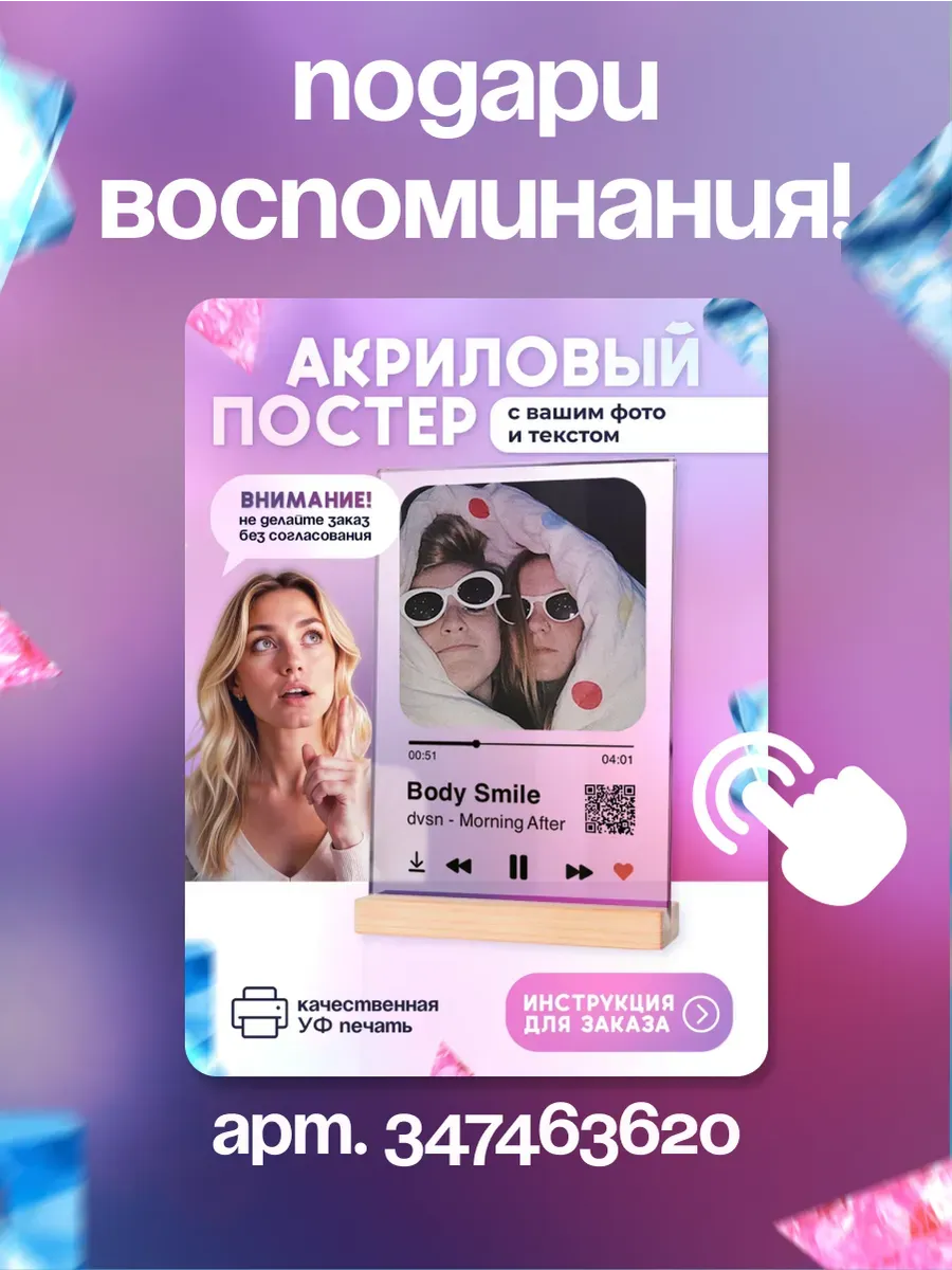 После сканирования QR-кода открывается соответствующий сайт (ВК Музыка или Яндекс.Музыка), где пользователь может прослушать трек. Такая подставка является удобным и стильным аксессуаром для любителей kpop, рок, поп, джаз, клуд реп, рэп, хип хоп, трил, драмн бейз, даб степ, панк рок, хард рок, металл музыки, позволяя им быстро и легко наслаждаться своими любимыми треками. Она может использоваться как дома, так и в офисе или на других местах, где есть необходимость в прослушивании музыки. Станет отличным подарком на Новый год, Рождество, 8 марта, 14 февраля, день святого валентина, 23 февраля для друга, девушки, парня, подруги.