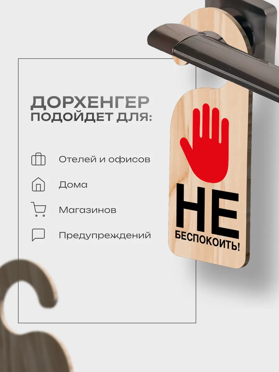 Информационная табличка Не беспокоить, Не входить, Вход запрещен дорхенгер из натуральной березовой древесины– стильный и практичный и экологичный аксессуар, который легко крепится на ручку двери, уведомляя окружающих о занятости. Она подойдет для офисов, магазинов, кафе, салонов красоты, гостиниц, школ, детских садов и других общественных мест, где важно своевременно информировать посетителей и персонал.