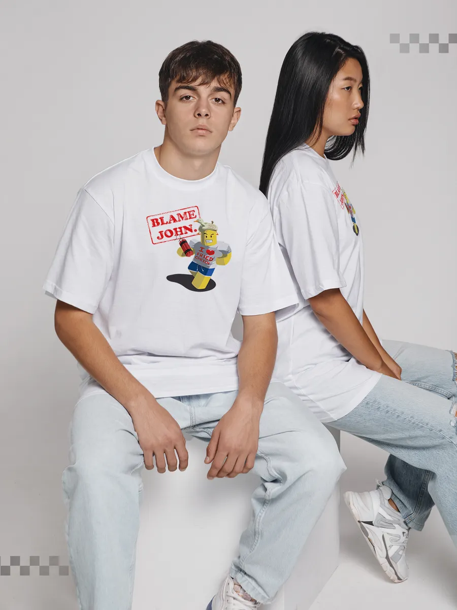Футболка с принтом roblox forsaken Blame John