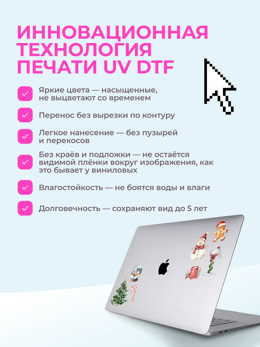 Преобразите свой ноутбук, наушники или чехол для телефона с помощью наших стикеров. УФ ДТФ печать гарантирует насыщенные цвета и четкость изображения, а износостойкое покрытие защитит от царапин и выцветания. Идеально подходят для гладких поверхностей, легко наносятся и снимаются, не оставляя следов. Создайте уникальный стиль и выбирайте из множества дизайнов!