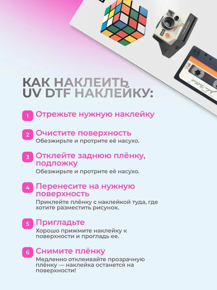 Преобразите свой ноутбук, наушники или чехол для телефона с помощью наших стикеров. УФ ДТФ печать гарантирует насыщенные цвета и четкость изображения, а износостойкое покрытие защитит от царапин и выцветания. Идеально подходят для гладких поверхностей, легко наносятся и снимаются, не оставляя следов. Создайте уникальный стиль и выбирайте из множества дизайнов!