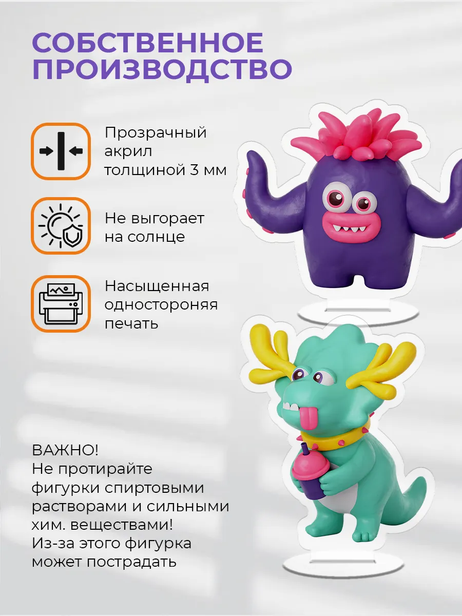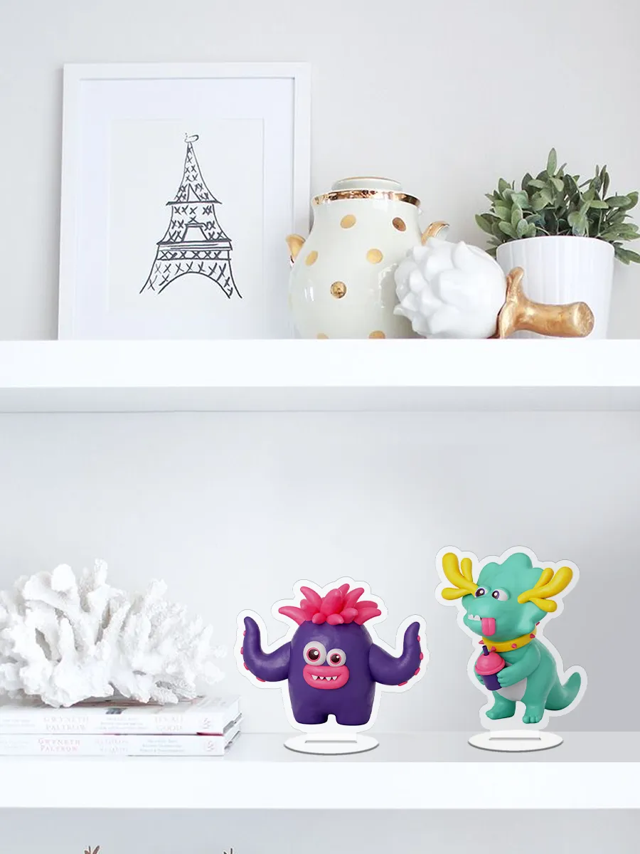 Яркая акриловая фигурка с Динозавр и Фиолетовый Осьминог, Monsters still life, Монстр Стиль Лайф, Милые монстры, может стать прекрасным акцентом при оформлении домашнего или офисного интерьера. Она добавит индивидуальности и красоты, прекрасно сочетаясь с любым стилем отделки. Статуэтка изготовлена из гипоаллергенного оргстекла с нанесением качественной УФ-печати, что обеспечивает ей долговечность и устойчивость к воздействию солнечных лучей и воды. Коллекционные фигурки КУРО КОКО это стильные аксессуары для дома, которые могут стать уникальным украшением для комнаты как мальчика, так и девочки. Они прекрасно смотрятся на полке с книгами, на рабочем столе, рядом с монитором компьютера или даже внутри системного блока с прозрачной крышкой корпуса. Эти стеклянные фигурки гармонично дополнят рабочее место в офисе, складе или на заводе и могут стать замечательным сувениром для коллег.