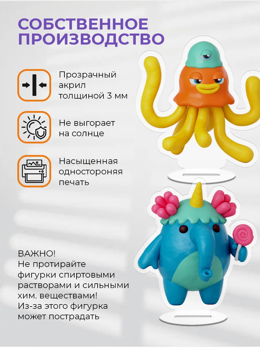 Яркая акриловая фигурка с Монстр, Монстр Слон, Монстр Осьминог, Monsters still life, Монстр Стиль Лайф, Милые монстры, может стать прекрасным акцентом при оформлении домашнего или офисного интерьера. Она добавит индивидуальности и красоты, прекрасно сочетаясь с любым стилем отделки. Статуэтка изготовлена из гипоаллергенного оргстекла с нанесением качественной УФ-печати, что обеспечивает ей долговечность и устойчивость к воздействию солнечных лучей и воды. Коллекционные фигурки КУРО КОКО это стильные аксессуары для дома, которые могут стать уникальным украшением для комнаты как мальчика, так и девочки. Они прекрасно смотрятся на полке с книгами, на рабочем столе, рядом с монитором компьютера или даже внутри системного блока с прозрачной крышкой корпуса. Эти стеклянные фигурки гармонично дополнят рабочее место в офисе, складе или на заводе и могут стать замечательным сувениром для коллег.