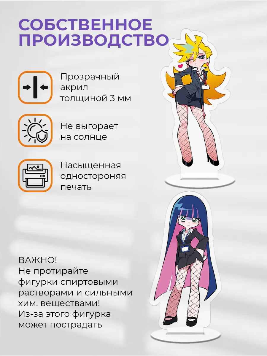 Яркая акриловая фигурка Panty & Stocking with Garterbelt (Труська, Чулко и пресвятой Подвяз) Стокинг (Stocking Anarchy) Пэнти (Panty Anarchy) может стать прекрасным акцентом при оформлении домашнего или офисного интерьера. Она добавит индивидуальности и красоты, прекрасно сочетаясь с любым стилем отделки. Статуэтка изготовлена из гипоаллергенного оргстекла с нанесением качественной УФ-печати, что обеспечивает ей долговечность и устойчивость к воздействию солнечных лучей и воды. Коллекционные фигурки КУРО КОКО это стильные аксессуары для дома, которые могут стать уникальным украшением для комнаты как мальчика, так и девочки. Они прекрасно смотрятся на полке с книгами, на рабочем столе, рядом с монитором компьютера или даже внутри системного блока с прозрачной крышкой корпуса. Эти стеклянные фигурки гармонично дополнят рабочее место в офисе, складе или на заводе и могут стать замечательным сувениром для коллег.