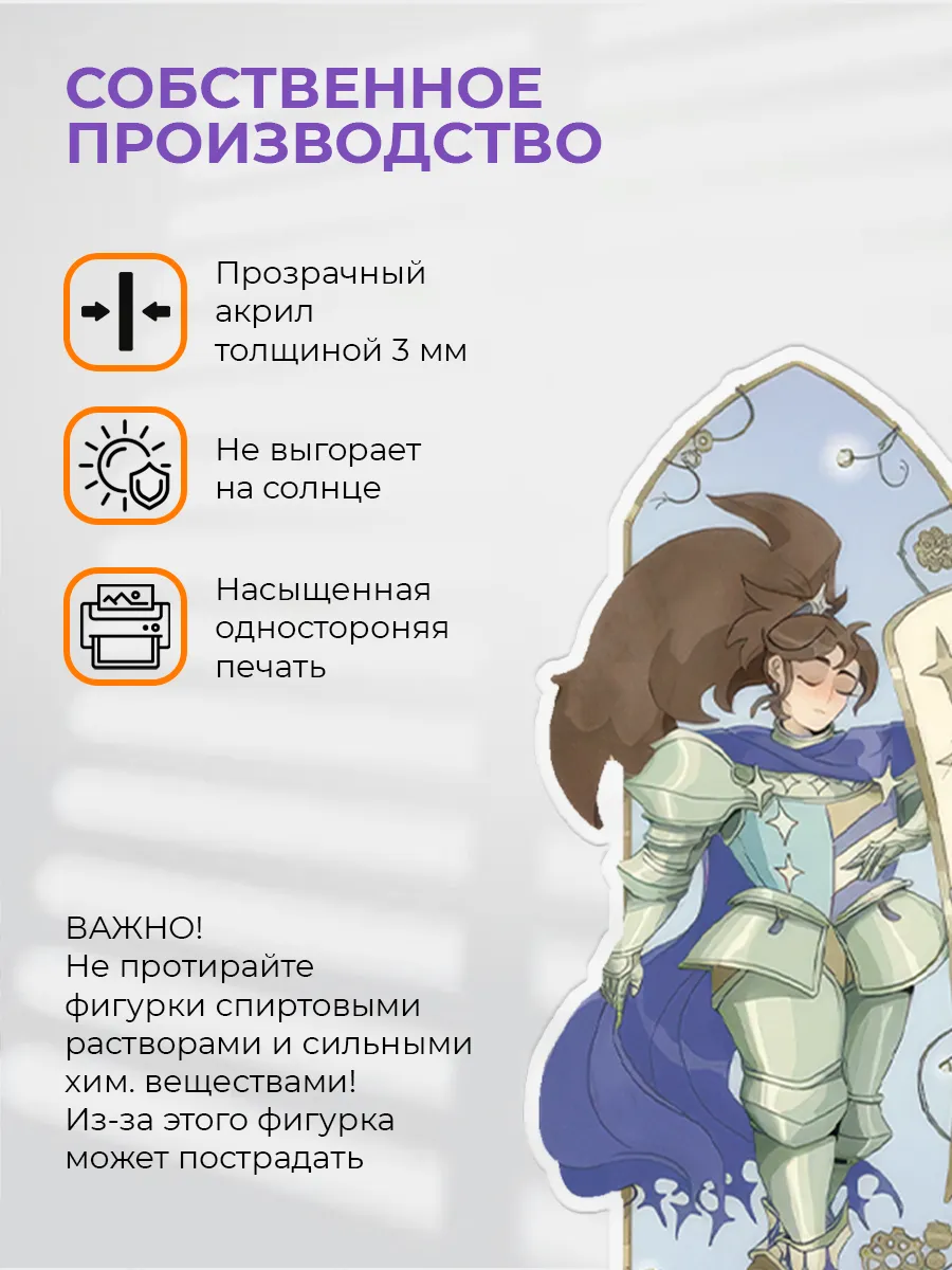 Яркая акриловая фигурка Фрэнки (Франческа, Frankie, Гвиневра, Оливия Парк, Орвилл Парк) из мультфильма Knights of Guinevere (Рыцари Гвиневры) - может стать прекрасным акцентом при оформлении домашнего или офисного интерьера. Она добавит индивидуальности и красоты, прекрасно сочетаясь с любым стилем отделки. Статуэтка изготовлена из гипоаллергенного оргстекла с нанесением качественной УФ-печати, что обеспечивает ей долговечность и устойчивость к воздействию солнечных лучей и воды. Коллекционные фигурки КУРО КОКО это стильные аксессуары для дома, которые могут стать уникальным украшением для комнаты как мальчика, так и девочки. Они прекрасно смотрятся на полке с книгами, на рабочем столе, рядом с монитором компьютера или даже внутри системного блока с прозрачной крышкой корпуса. Эти стеклянные фигурки гармонично дополнят рабочее место в офисе, складе или на заводе и могут стать замечательным сувениром для коллег.