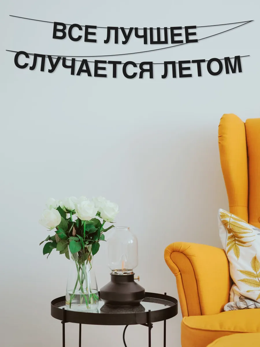 Гирлянда-растяжка с надписью «Все Лучшее Случается Летом» чёрного цвета. Черные буквы изготовлены из микрогофрокартона (толщиной 1,6 мм). Гирлянда из букв имеет гладкую поверхность и качественную покраску по одной стороне. Такое украшение подойдёт для любого интерьера, будь то, дом квартира или офис. Вы можете повесить текстовую растяжку в своей спальне, гостиной, кухне, либо прихожей или в кабинете. Надпись на стене, будет дополнять стиль, для вас и ваших близких друзей, родственников и коллег по работе. Буквы для декора производятся на нашем собственном оборудовании, в России. Бумажная вывеска подойдет для новоселья и любого праздника, мы готовим и выпускаем множество видов универсальных фраз для декора свадеб, вечеринок, корпоративных встреч и всегда помним про важность фраз для поднятия мотивации и духа. Микрогофрокартон в разы легче фанеры, но долговечнее бумажного картона, а значит слова из него легко можно повесить на липкую ленту или канцелярские кнопки, без сверления стены. Прозрачная липкая лента и кнопки, на выбор, лежат в упаковке с герлядной.