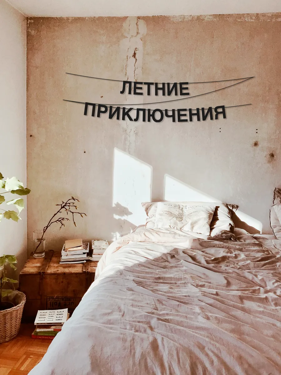 Гирлянда-растяжка с надписью «Летние Приключения» чёрного цвета. Черные буквы изготовлены из микрогофрокартона (толщиной 1,6 мм). Гирлянда из букв имеет гладкую поверхность и качественную покраску по одной стороне. Такое украшение подойдёт для любого интерьера, будь то, дом квартира или офис. Вы можете повесить текстовую растяжку в своей спальне, гостиной, кухне, либо прихожей или в кабинете. Надпись на стене, будет дополнять стиль, для вас и ваших близких друзей, родственников и коллег по работе. Буквы для декора производятся на нашем собственном оборудовании, в России. Бумажная вывеска подойдет для новоселья и любого праздника, мы готовим и выпускаем множество видов универсальных фраз для декора свадеб, вечеринок, корпоративных встреч и всегда помним про важность фраз для поднятия мотивации и духа. Микрогофрокартон в разы легче фанеры, но долговечнее бумажного картона, а значит слова из него легко можно повесить на липкую ленту или канцелярские кнопки, без сверления стены. Прозрачная липкая лента и кнопки, на выбор, лежат в упаковке с герлядной.