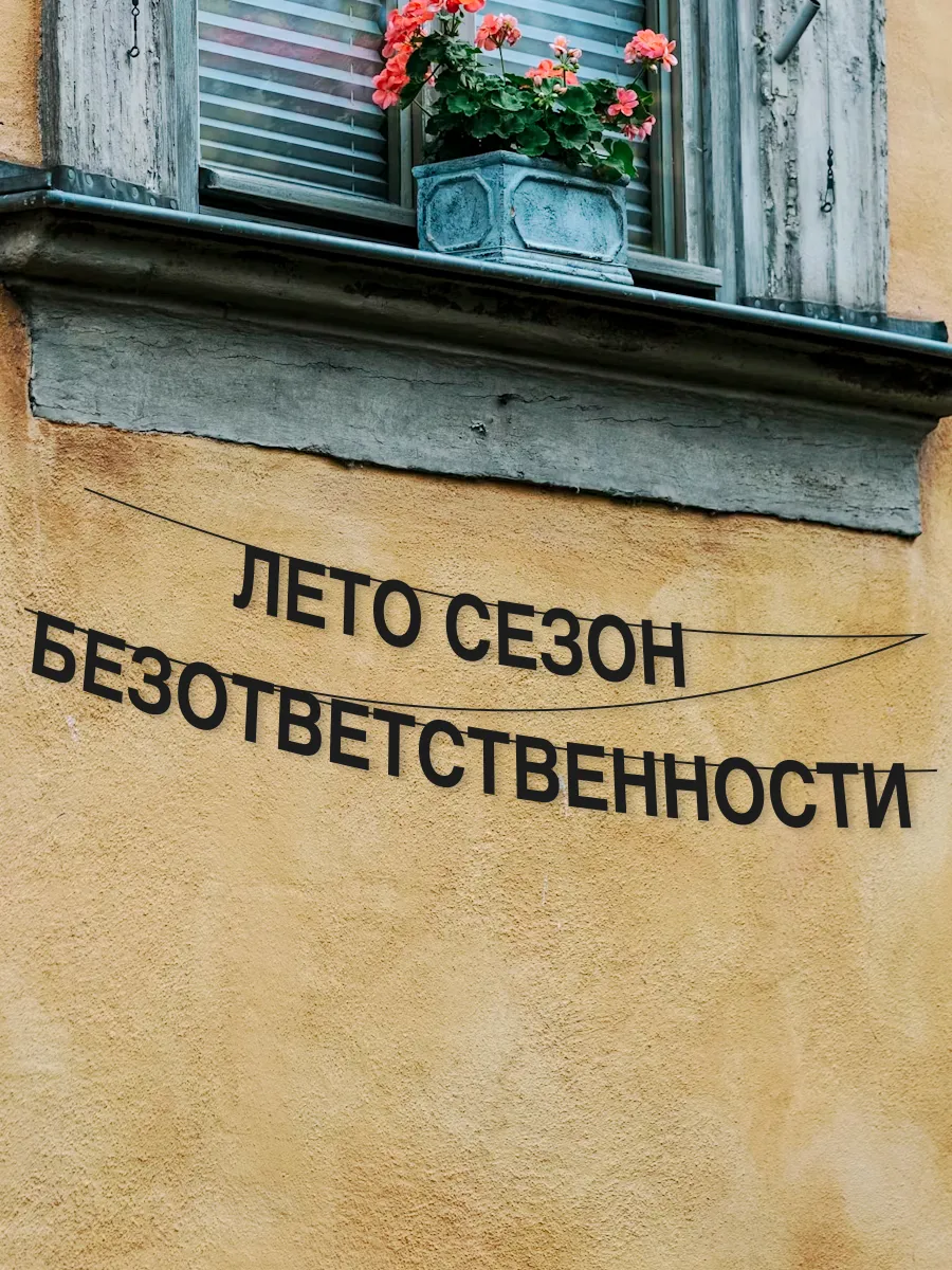 Гирлянда-растяжка чёрного цвета с надписью «Лето Сезон Безответственности» цитата писателя О. Генри. Черные буквы изготовлены из микрогофрокартона (толщиной 1,6 мм). Гирлянда из букв имеет гладкую поверхность и качественную покраску по одной стороне. Такое украшение подойдёт для любого интерьера, будь то, дом квартира или офис. Вы можете повесить текстовую растяжку в своей спальне, гостиной, кухне, либо прихожей или в кабинете. Надпись на стене, будет дополнять стиль, для вас и ваших близких друзей, родственников и коллег по работе. Буквы для декора производятся на нашем собственном оборудовании, в России. Бумажная вывеска подойдет для новоселья и любого праздника, мы готовим и выпускаем множество видов универсальных фраз для декора свадеб, вечеринок, корпоративных встреч и всегда помним про важность фраз для поднятия мотивации и духа. Микрогофрокартон в разы легче фанеры, но долговечнее бумажного картона, а значит слова из него легко можно повесить на липкую ленту или канцелярские кнопки, без сверления стены. Прозрачная липкая лента и кнопки, на выбор, лежат в упаковке с герлядной.