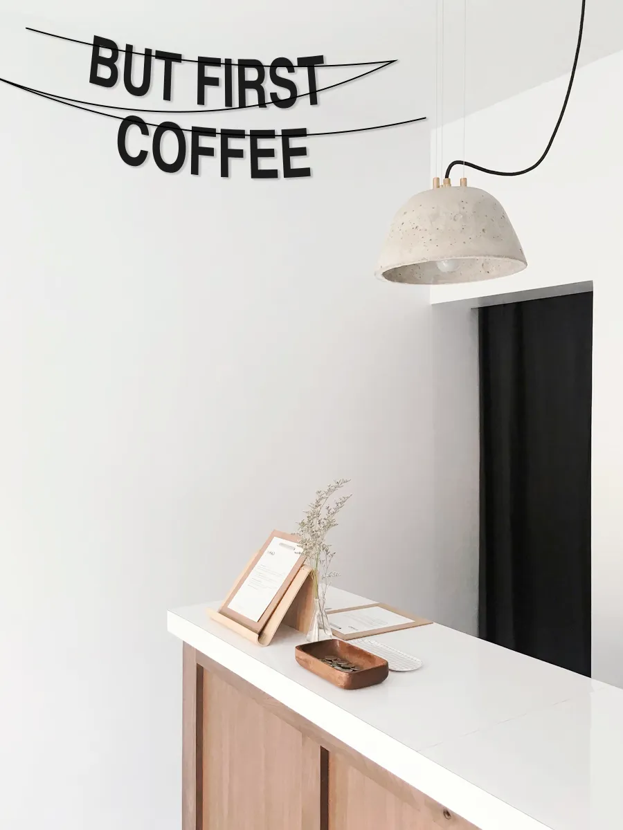 Гирлянда-растяжка с надписью «But first coffee» чёрного цвета. Черные буквы изготовлены из микрогофрокартона (толщиной 1,6 мм). Гирлянда из букв имеет гладкую поверхность и качественную покраску по одной стороне. Такое украшение подойдёт для любого интерьера, будь то, дом квартира или офис. Вы можете повесить текстовую растяжку в своей спальне, гостиной, кухне, либо прихожей или в кабинете. Надпись на стене, будет дополнять стиль, для вас и ваших близких друзей, родственников и коллег по работе. Буквы для декора производятся на нашем собственном оборудовании, в России. Бумажная вывеска подойдет для новоселья и любого праздника, мы готовим и выпускаем множество видов универсальных фраз для декора свадеб, вечеринок, корпоративных встреч и всегда помним про важность фраз для поднятия мотивации и духа. Микрогофрокартон в разы легче фанеры, но долговечнее бумажного картона, а значит слова из него легко можно повесить на липкую ленту или канцелярские кнопки, без сверления стены. Прозрачная липкая лента и кнопки, на выбор, лежат в упаковке с герлядной.
