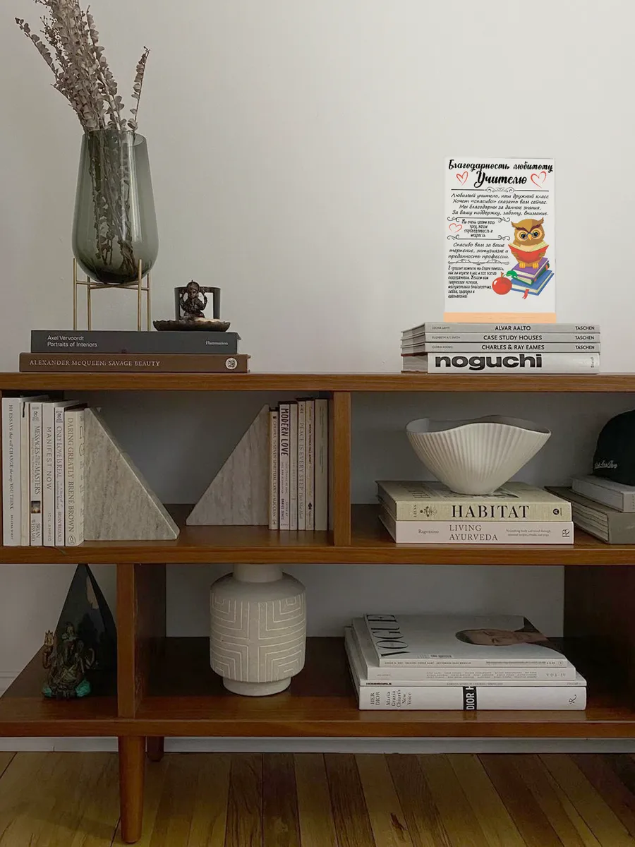 Постер (тейбл тент) открытка с приятными словами, подарок учителю, учительнице на выпускной - это не должен быть просто предмет, это часть памяти. Открытка на деревянной основе представляет собой удобную и стильную подставку, которая станет уникальным подарком на день рождения, новый год, 14 февраля, 23 февраля и 8 марта, день святого валентина. Подойдет для учителя в честь выпускного.