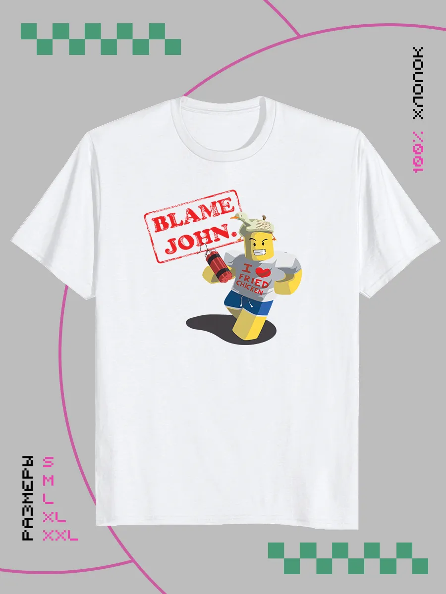 Футболка с принтом roblox forsaken Blame John